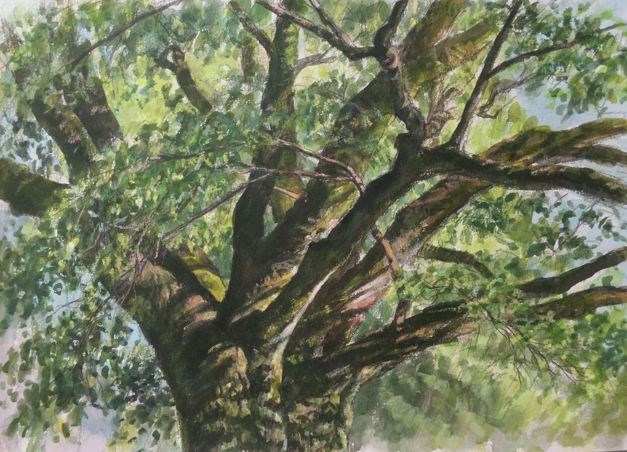 ○作品について;2016年6月、国立市大学通りの桜並木のうち、55番目のヤマザクラを描いたものです。